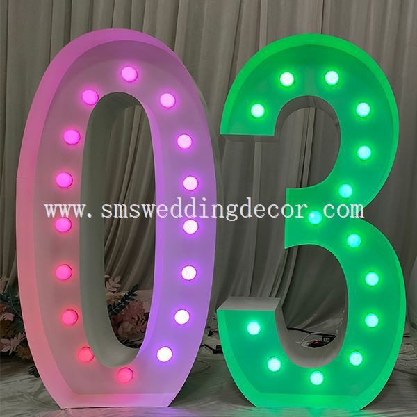 Tieto svietiace veľké čísla sú vyrobené z bieleho železného plechu s drážkami vo vnútri na upevnenie LED alebo RGB žiaroviek. Môžete si ľubovoľne zvoliť biele svetlo, teplé svetlo alebo farebné meniace sa svetlo.
